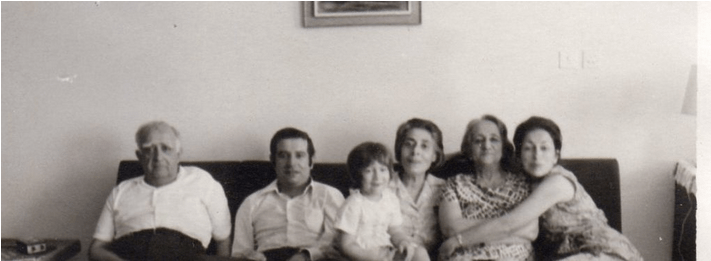 From L to R: Ruhi Mohsen Afnan, Parviz Afnan, Parvine Shahid, Zahra Shahid Afnan, Soraya Afnan and Bahiyeh Afnan Shahid , 1970, Iran