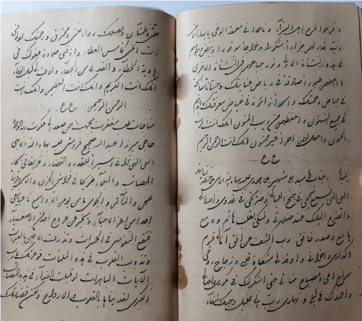 Pages from Ruha Khanum’s prayer book in her own handwriting