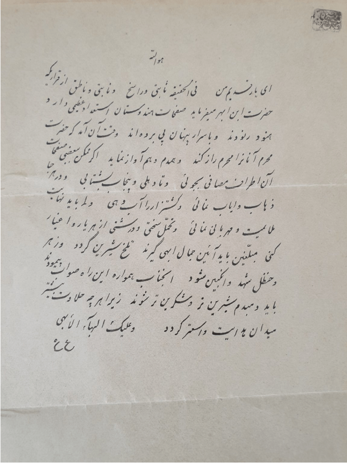 Letter was written by Abdul Baha to his grandson Ruhi Afnan, 1917